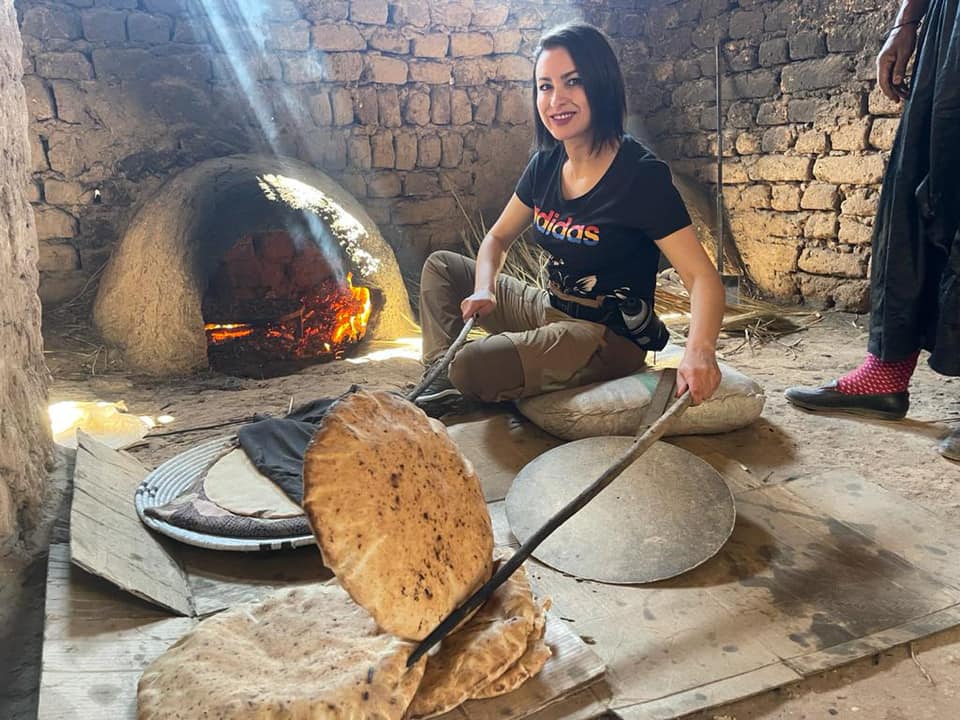 الأجمل هو صمودها، هي، ومقاومتها، هي، ليس لحرارة الفرن وحريق الخبز الساخن ليديها، وليس حتى لقساوة الصحراء وحرها، فهي بنت الصحراء وسعيدة باستقرارها في موطنها وموطن أجدادها، ولكن مقاومتها وصمودها أمام قساوة واقع الحياة والفقر، فقر ازدادت حدته بعد أن تعطل أبناؤها وزوجها عن العمل، عمل مصدره السياحة، عمل غيبه كوڤيد كما غيّب الفرحة على قلوب العاملين في هذا القطاع…