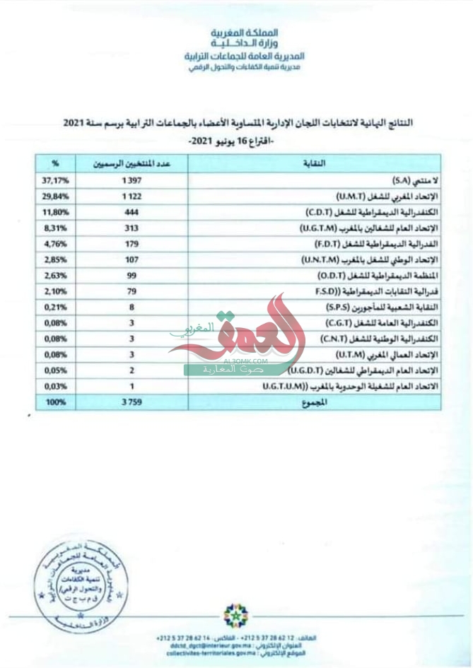 حصري.. اللامنتمون وUMT يسيطران على الانتخابات المهنية بالجماعات الترابية